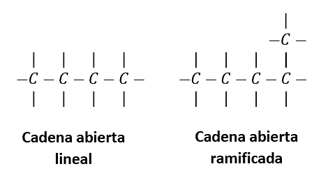 En base a ello, las cadenas formadas por los átomos de carbono enlazados entre sí con otro átomo pueden ser: abiertas y cerradas.