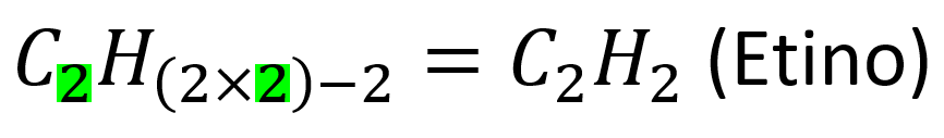 Responde a la fórmula general: CnH2n−2. Los alquinos poseen dos átomos de hidrógeno menos que los alquenos con el mismo número de átomos de carbono. Por ende, no existe algún alquino con un solo átomo de carbono como el metano.