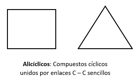 La cadena carbonada se cierra formando ciclos o anillos. En dichas conformaciones puede haber enlaces sencillos, dobles o triples: