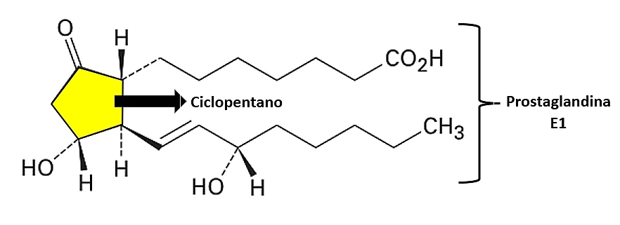 Por ejemplo, el ciclopentano forma parte de la estructura de la prostaglandina, una hormona de gran importancia en diversas funciones fisiológicas.
