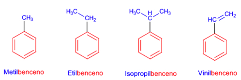 Como acabamos de ver, en estas sustancias los dobles enlaces no tienen una posición definida, en consecuencia para el benceno se suele usar el siguiente símbolo: