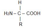Todas las moléculas de proteínas están formadas por un conjunto de 20 aminoácidos, biomoléculas con la fórmula estructural:
