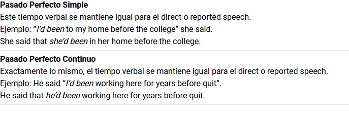 Es decir, en el direct speech o en el estilo directo, todas las expresiones de tiempos verbales están en presente. Pero cuando utilices el estilo indirecto o reported speech este verbo cambia a pasado. Sin embargo, hay dos excepciones que verás más adelante.